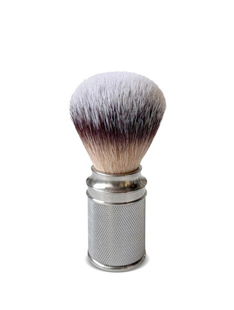 - Pędzel do golenia Epsilon Chrome Metallic Synthetic z knotem 24 mm i włóknem syntetycznym imitującym borsuka. Tworzy gęstą pianę, jest miękki i sprężysty. Solidna, ryflowana metalowa rączka zapewnia pewny chwyt. Higieniczny i szybkoschnący.