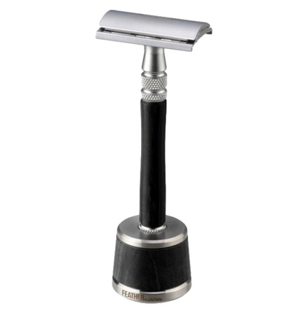 Feather Stainless Steel WS-D2S – Maszynka do Golenia z Drewnianą Rączką i Stojakiem