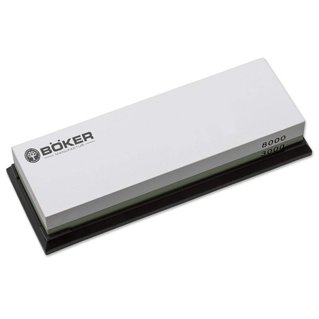 - Dwustronny kamień syntetyczny Boker 3000/8000 do ostrzenia brzytew i noży. Strona 3000 do szlifowania i wyrównania krawędzi, strona 8000 do precyzyjnego pre-finishu. Stabilna gumowa podstawa, szybka praca, wymiary 18×6×3 cm.