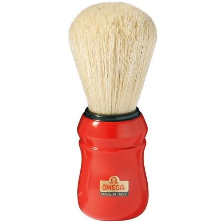 - Profesjonalny pędzel do golenia Omega Nº49 z włosiem świńskim (Pure Bristle) i ergonomiczną, czerwoną rączką. Barber jakość od 1946 roku – idealny dla miłośników tradycyjnego golenia.