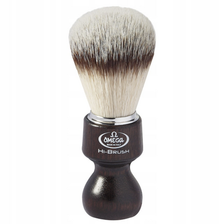 - Nowoczesny pędzel do golenia Omega HI-BRUSH z włosiem syntetycznym najwyższej jakości i elegancką drewnianą rączką. Doskonały wybór dla wegan i miłośników tradycyjnego golenia.