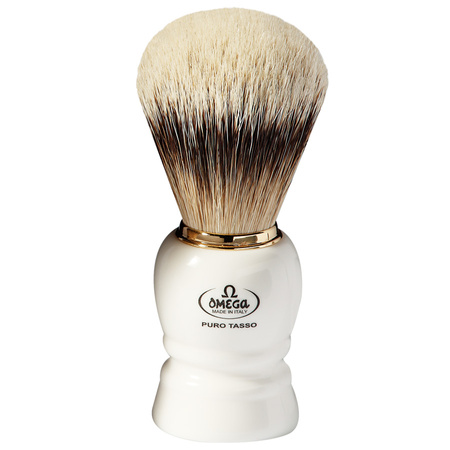 - Omega Silver Tip Badger – ręcznie wykonany pędzel z miękkiego włosia borsuka srebrnego. Luksusowy, wygodny i precyzyjny – włoska jakość dla miłośników tradycyjnego golenia. Produkt premium.