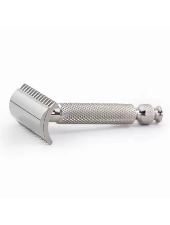 - Precyzyjna maszynka z otwartym grzebieniem, wykonana z morskiej stali nierdzewnej 316L, toczona na maszynach CNC. Jej głowica BBS zapewnia idealny kąt 35°, doskonały poślizg ostrza i wyjątkowo komfortowe golenie.