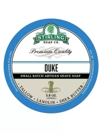 - Stirling Soap Co Duke – mydło do golenia 170 ml to ręcznie wytwarzane mydło z USA, zapewniające gęstą, kremową pianę i doskonały poślizg. Męski zapach przypraw, drewna i ambry. Wysoka wydajność, naturalna formuła, idealne do tradycyjnego golenia.