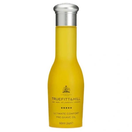 - Truefitt & Hill Ultimate Comfort Pre-shave Oil 60 ml to lekki olejek przed goleniem zawierający 10 olejków eterycznych, które zmiękczają zarost, chronią skórę i przygotowują ją do komfortowego golenia. Nie zatyka porów ani maszynek.