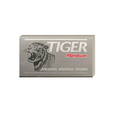 - Tiger Platinum to podwójnie ostrzone żyletki pokryte platyną, produkowane w Czechach. Zapewniają gładkie, komfortowe golenie i minimalizują podrażnienia. Każda żyletka jest indywidualnie zapakowana w papier woskowy.